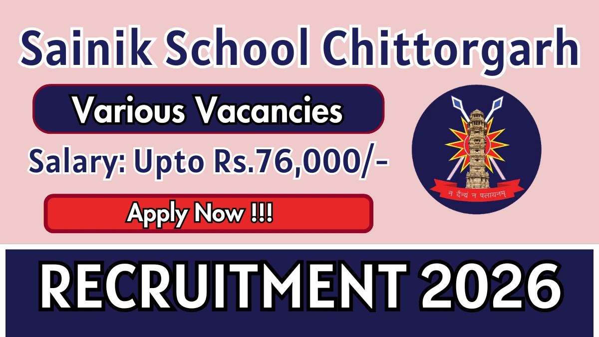 Sainik School Chittorgarh has released an official notification for the recruitment of 11 PGT, TGT And More Posts. Interested and eligible candidates can apply Offline through the official Sainik School Chittorgarh website. The last date to submit the application form is 23-01-2026. In this article, you’ll find the Sainik School Chittorgarh PGT, TGT And More Posts recruitment details, including eligibility criteria, age limit, salary structure, selection process, application steps, and direct links to the official notification and Offline application form.
