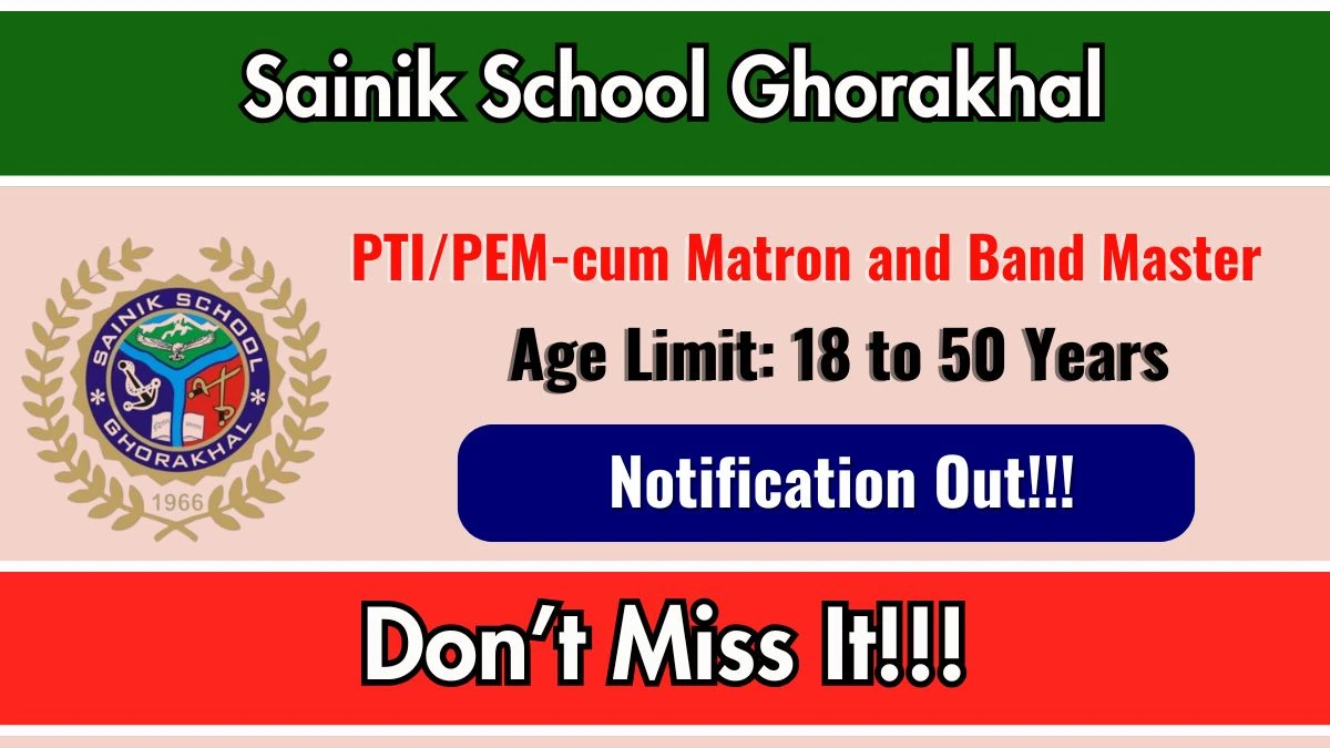 Sainik School Ghorakhal has officially released a notification for the recruitment of 2 PTI/PEM-cum Matron and Band Master Posts. This recruitment drive offers a great opportunity for candidates looking for defence jobs. Interested and eligible candidates can download the application form from the official website and submit it offline.