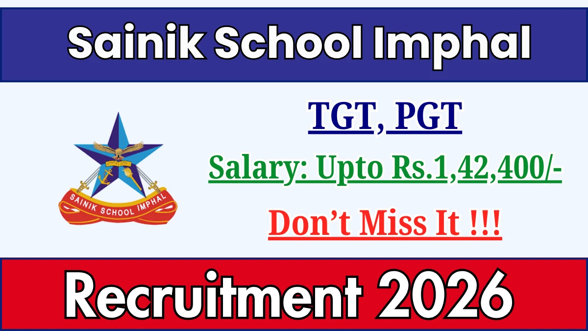 Candidates aged between 21 to 35 years for TGT posts and up to 40 years for PGT posts who have qualifications such as Graduation with B.Ed and CTET/TET or Post Graduation with B.Ed are eligible to apply for these teaching posts. The application process for Sainik School Imphal Recruitment 2026 is offline, and candidates can submit their applications by post until 18-04-2026.