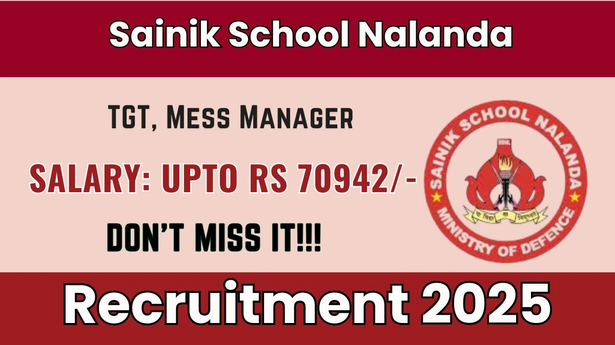 Sainik School Nalanda has released an official notification for the recruitment of 02 TGT, Mess Manager Posts. Interested and eligible candidates can apply Offline through the official Sainik School Nalanda website. The last date to submit the application form is 26-12-2025. In this article, you’ll find the Sainik School Nalanda TGT, Mess Manager Posts recruitment details, including eligibility criteria, age limit, salary structure, selection process, application steps, and direct links to the official notification and Offline application form.