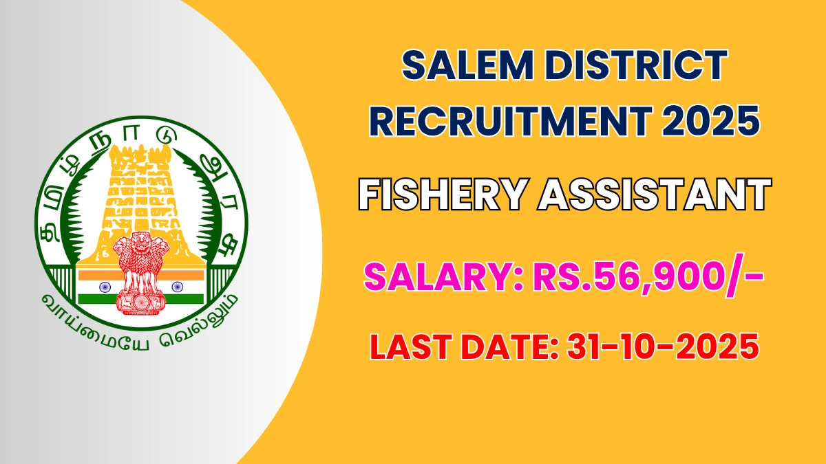 Salem District (Salem District) has released an official notification for the recruitment of 08 Fishery Assistant Posts. Interested and eligible candidates can apply Offline through the official Salem District website. The last date to submit the application form is 31-10-2025. In this article, you’ll find the Salem District Fishery Assistant Posts recruitment details, including eligibility criteria, age limit, salary structure, selection process, application steps, and direct links to the official notification and Offline application form.