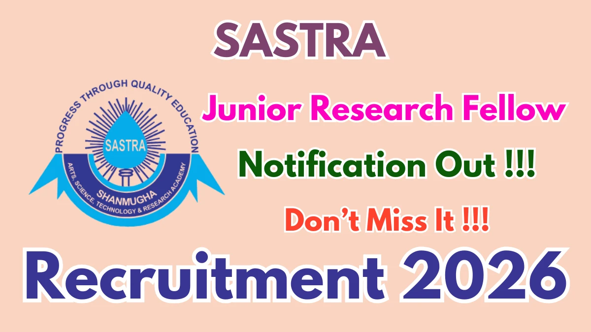 SASTRA Deemed University (SASTRA) has released an official notification for the recruitment of 01 Junior Research Fellow Posts. Interested and eligible candidates can apply Offline through the official SASTRA website. The last date to submit the application form is 10-02-2026. In this article, you’ll find the SASTRA Junior Research Fellow Posts recruitment details, including eligibility criteria, age limit, salary structure, selection process, application steps, and direct links to the official notification and Offline application form.