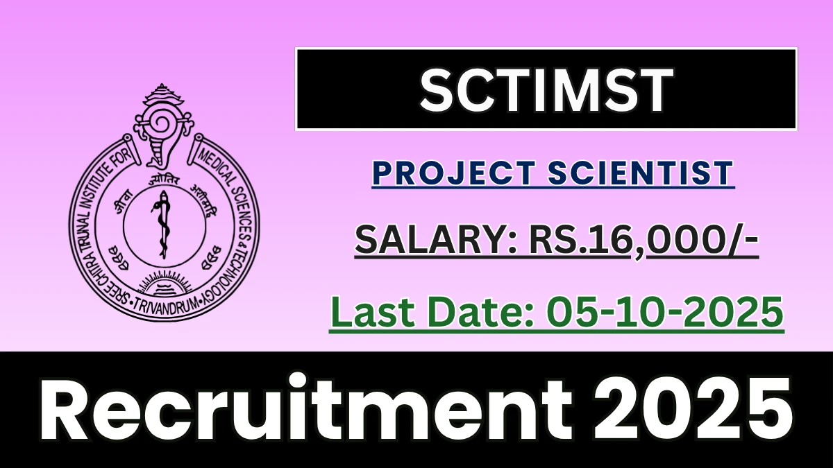 Sree Chitra Tirunal Institute for Medical Sciences and Technology (SCTIMST) has released an official notification for the recruitment of 01 Project Scientist Posts. Interested and eligible candidates can apply Offline through the official SCTIMST website. The last date to submit the application form is 05-10-2025. In this article, you’ll find the SCTIMST Project Scientist Posts recruitment details, including eligibility criteria, age limit, salary structure, selection process, application steps, and direct links to the official notification and Offline application form.
