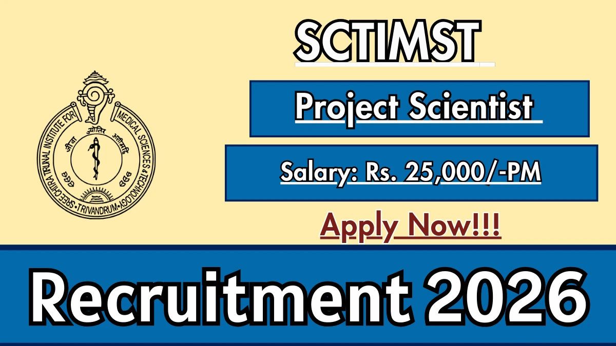 Candidates who meet the eligibility criteria can apply online for the SCTIMST Project Scientist Recruitment 2026.