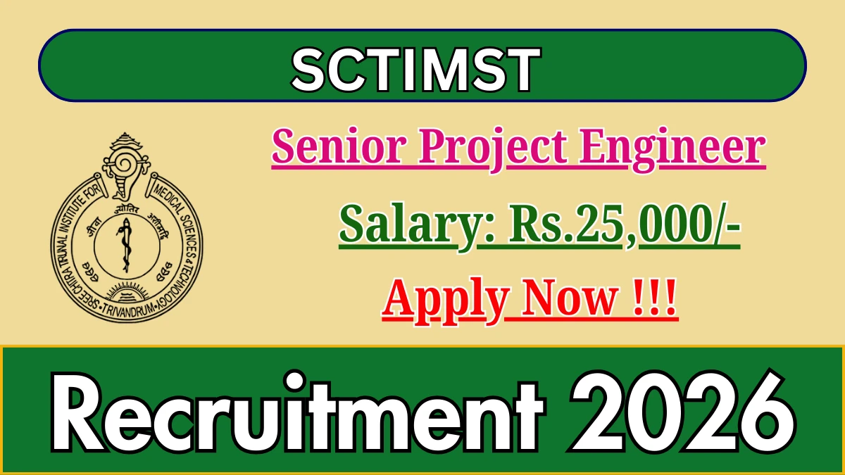 Sree Chitra Tirunal Institute for Medical Sciences and Technology (SCTIMST) Recruitment 2026 for 01 posts of Senior Project Engineer. Candidates with B.Tech/B.E, M.E/M.Tech Can attend the walkin. The Walk-in on 07-02-2026. For detailed information please visit SCTIMST official website, sctimst.ac.in.