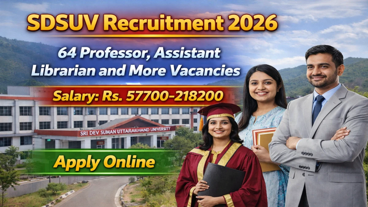 Sri Dev Suman Uttarakhand University (SDSUV) Professor, Assistant Librarian and More Notification 2026 has been released on 10-03-2026 on the official website sdsuv.co.in. A total of 64 vacancies have been announced through the SDSUV Recruitment 2026.