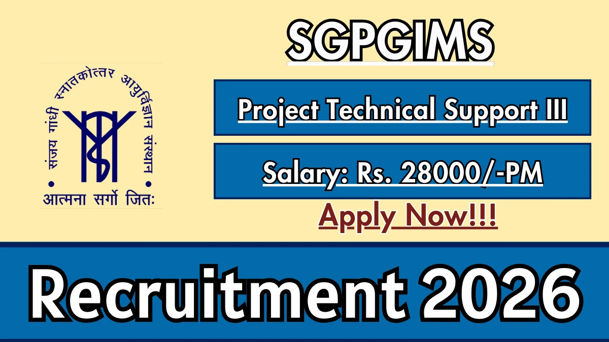 Sanjay Gandhi Post Graduate Institute of Medical Sciences (SGPGIMS) has released the SGPGIMS Project Technical Support-III Recruitment 2026 notification for 1 contractual vacancy under a microbiology research project.