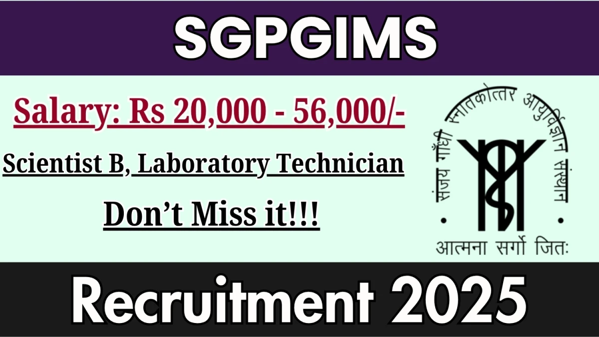 Sanjay Gandhi Post Graduate Institute of Medical Sciences (SGPGIMS) has released an official notification for the recruitment of 02 Scientist B, Laboratory Technician Posts. Interested and eligible candidates can apply Offline through the official SGPGIMS website. The last date to submit the application form is 31-10-2025. In this article, you’ll find the SGPGIMS Scientist B, Laboratory Technician Posts recruitment details, including eligibility criteria, age limit, salary structure, selection process, application steps, and direct links to the official notification and Offline application form.