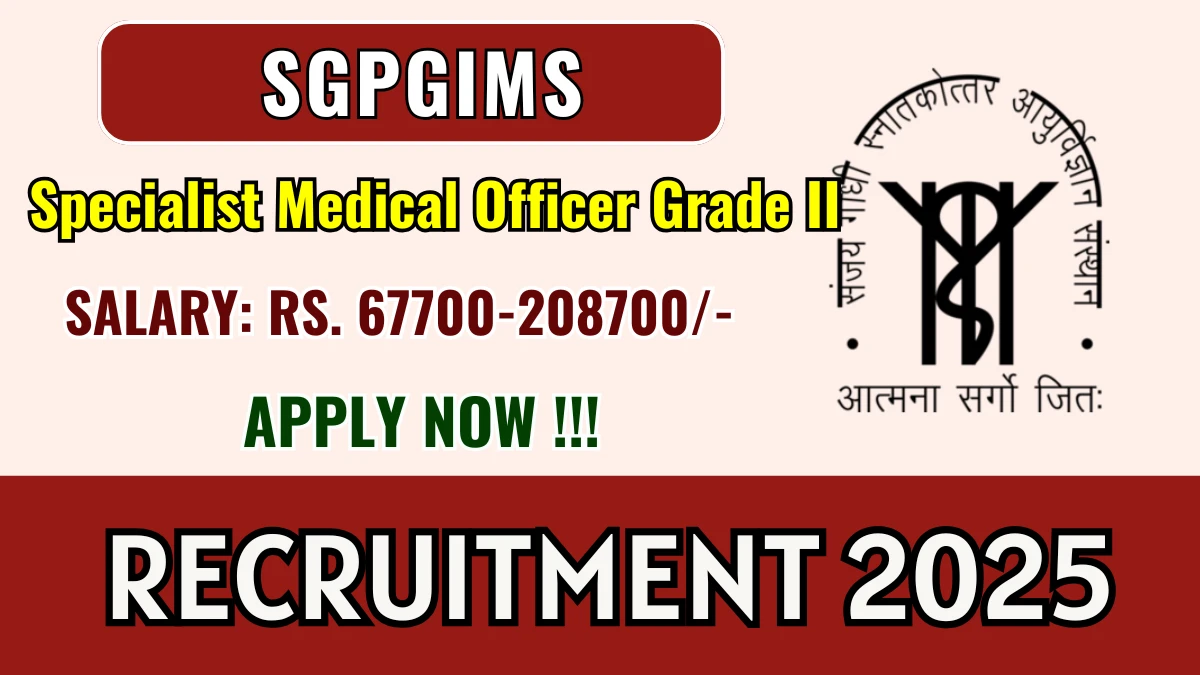 Sanjay Gandhi Post Graduate Institute of Medical Sciences (SGPGIMS) has released an official notification for the recruitment of 01 Specialist Medical Officer Grade II Posts. Interested and eligible candidates can apply Offline through the official SGPGIMS website. The last date to submit the application form is 08-11-2025. In this article, you’ll find the SGPGIMS Specialist Medical Officer Grade II Posts recruitment details, including eligibility criteria, age limit, salary structure, selection process, application steps, and direct links to the official notification and Offline application form.