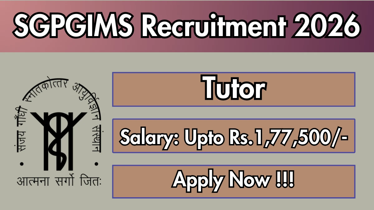 Sanjay Gandhi Post Graduate Institute of Medical Sciences (SGPGIMS) has released an official notification for the recruitment of 02 Tutor Posts. Interested and eligible candidates can apply Offline through the official SGPGIMS website. The last date to submit the application form is 19-02-2026. In this article, you’ll find the SGPGIMS Tutor Posts recruitment details, including eligibility criteria, age limit, salary structure, selection process, application steps, and direct links to the official notification and Offline application form.