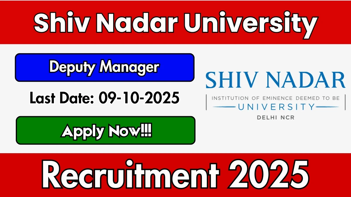 Shiv Nadar University has released an official notification for the recruitment of Deputy Manager Posts. Interested and eligible candidates can apply Online through the official Shiv Nadar University website. The last date to submit the application form is 09-10-2025. In this article, you’ll find the Shiv Nadar University Deputy Manager Posts recruitment details, including eligibility criteria, age limit, salary structure, selection process, application steps, and direct links to the official notification and Online application form.