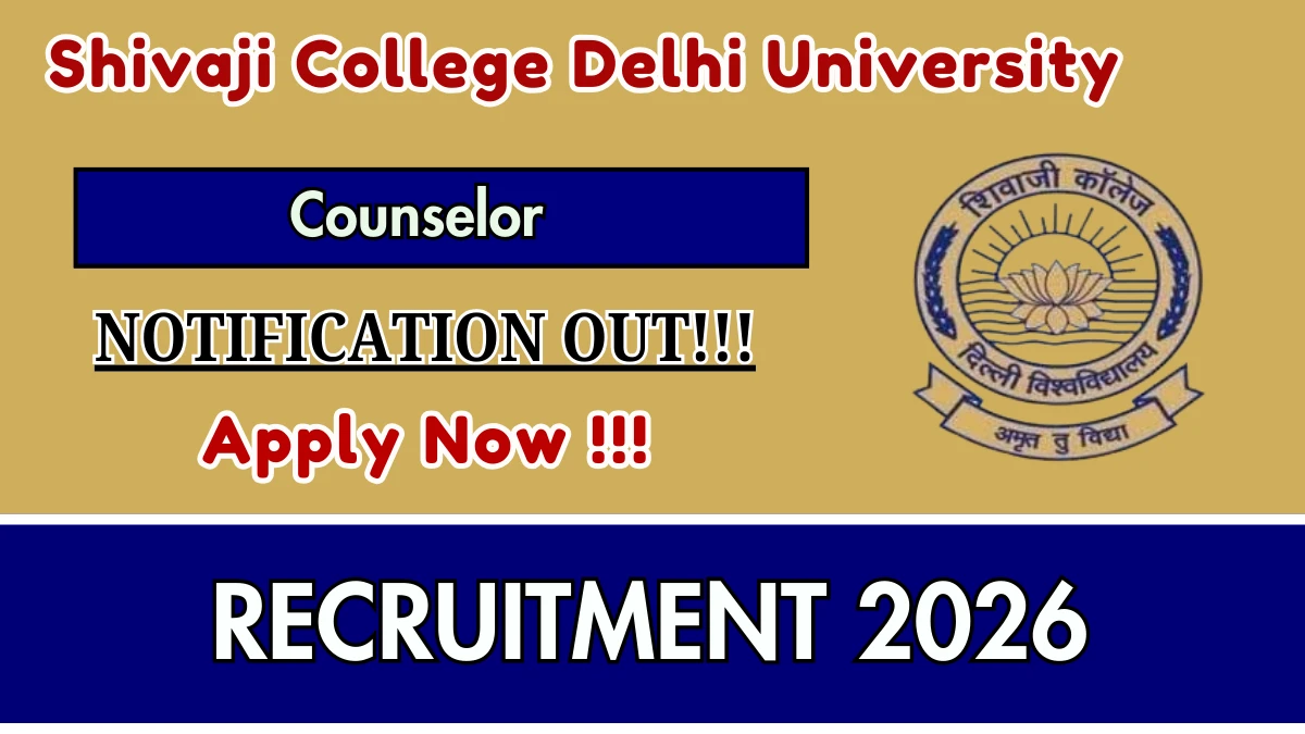 Shivaji College Delhi University Recruitment 2026 for 01 posts of Counselor. Candidates with M.A Can attend the walkin. The Walk-in on 30-01-2026. For detailed information please visit Shivaji College Delhi University official website,shivajicollege.ac.in.