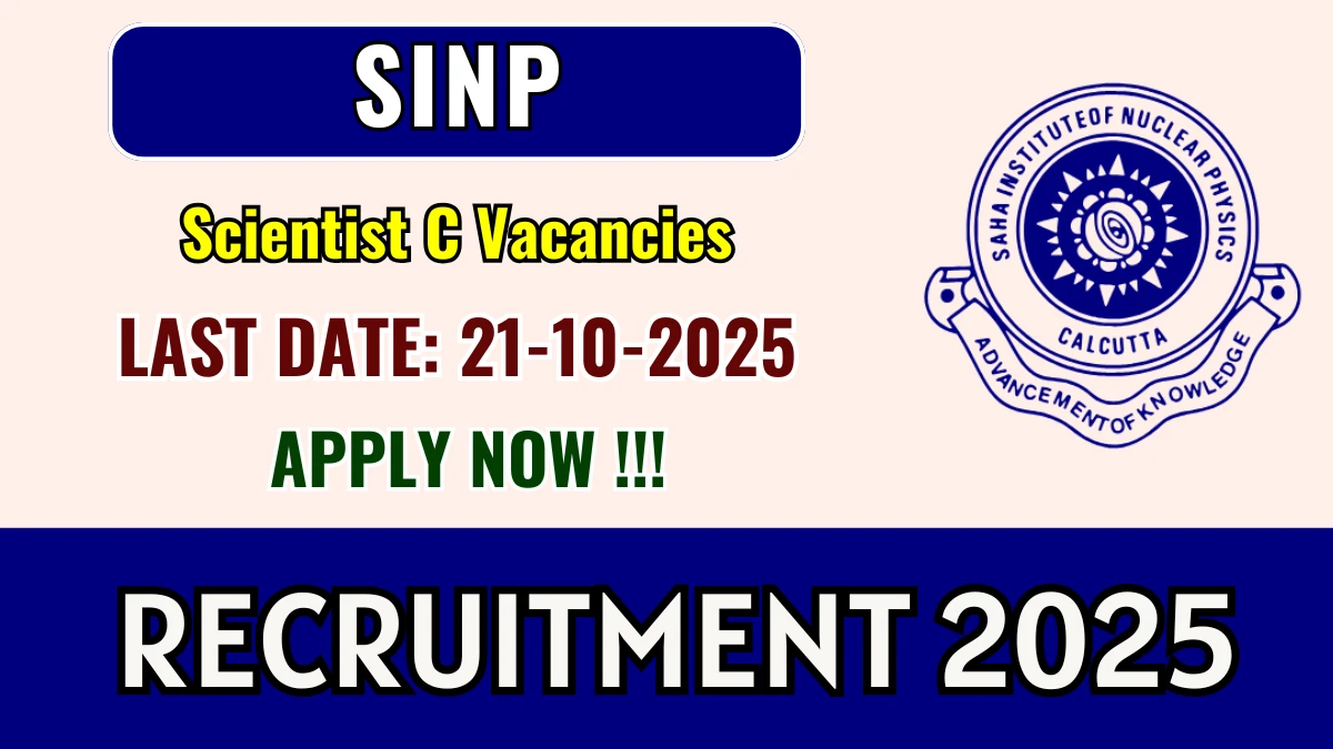 Saha Institute of Nuclear Physics (SINP) has released an official notification for the recruitment of 01 Scientist C Posts . Interested and eligible candidates can apply Online through the official SINP website. The last date to submit the application form is 21-10-2025. In this article, you’ll find the SINP Scientist C Posts recruitment details, including eligibility criteria, age limit, salary structure, selection process, application steps, and direct links to the official notification and Online application form.