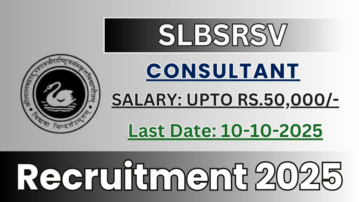 Shri Lal Bahadur Shastri National Sanskrit University (SLBSRSV) has released an official notification for the recruitment of Consultant Posts. Interested and eligible candidates can apply Offline through the official SLBSRSV website. The last date to submit the application form is 10-10-2025. In this article, you’ll find the SLBSRSV Consultant Posts recruitment details, including eligibility criteria, age limit, salary structure, selection process, application steps, and direct links to the official notification and Offline application form.