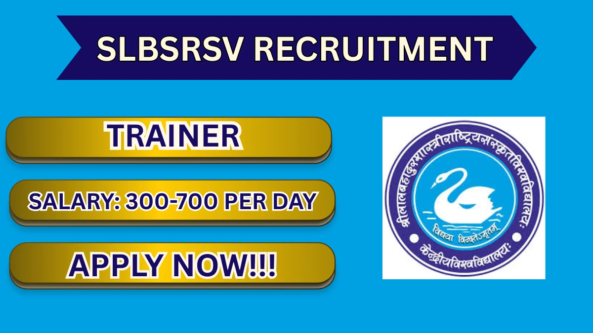 Shri Lal Bahadur Shastri National Sanskrit University (SLBSRSV) Recruitment 2026 for 01 posts of Trainer. Candidates with Any Graduate, Any Bachelors Degree Can attend the walkin. The Walk-in starts on 20-01-2026. For detailed information please visit SLBSRSV official website, slbsrsv.ac.in.