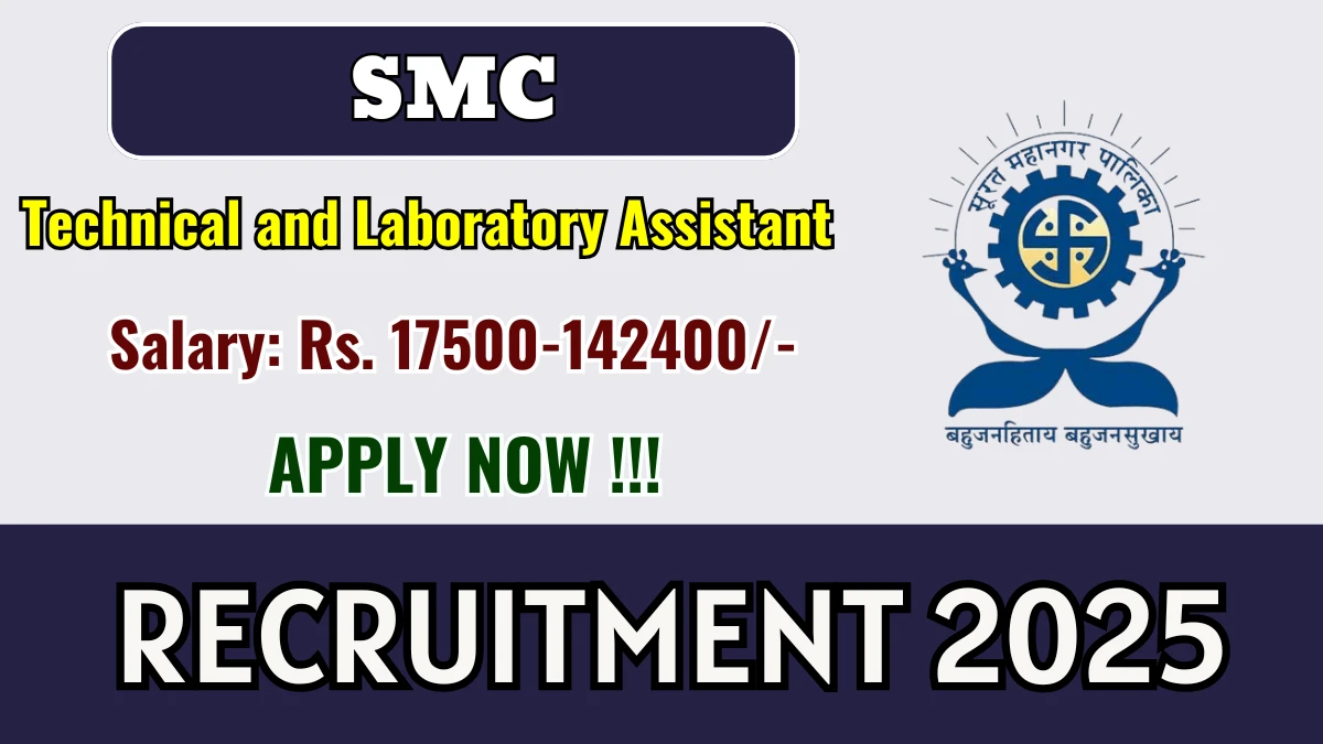 Surat Municipal Corporation (SMC) has released an official notification for the recruitment of 06 Technical Assistant, Laboratory Assistant Posts. Interested and eligible candidates can apply Online through the official SMC website. The last date to submit the application form is 24-10-2025. In this article, you’ll find the SMC Technical Assistant, Laboratory Assistant Posts recruitment details, including eligibility criteria, age limit, salary structure, selection process, application steps, and direct links to the official notification and Online application form.