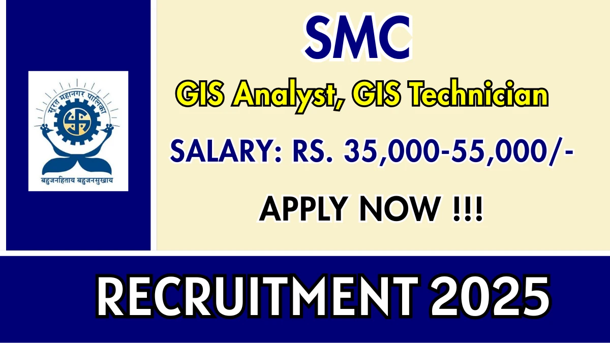 Surat Municipal Corporation (SMC) Recruitment 2025 for 02 posts of GIS Analyst, GIS Technician. Candidates with B.Sc, M.Sc, PG Diploma Can attend the walkin. The Walk-in on 08-10-2025. For detailed information please visit SMC official website, suratmunicipal.gov.in.