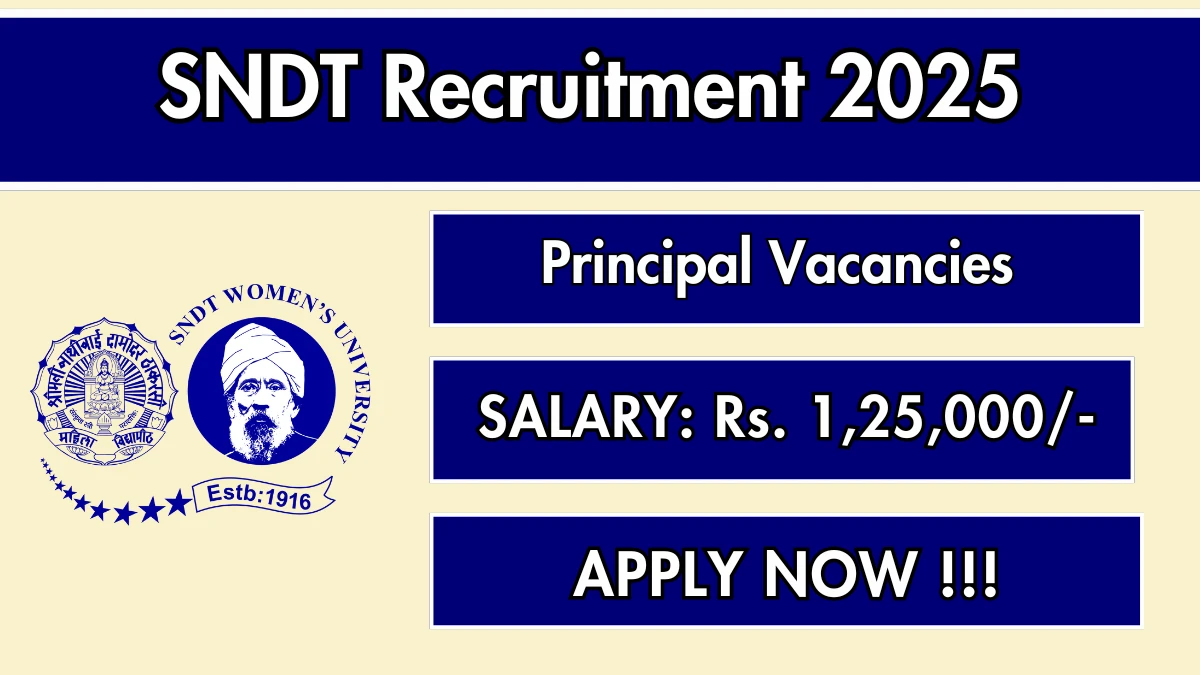 SNDT Womens University (SNDT) has released an official notification for the recruitment of 01 Principal Posts. Interested and eligible candidates can apply Offline through the official SNDT website. The last date to submit the application form is 22-10-2025. In this article, you’ll find the SNDT Principal Posts recruitment details, including eligibility criteria, age limit, salary structure, selection process, application steps, and direct links to the official notification and Offline application form.