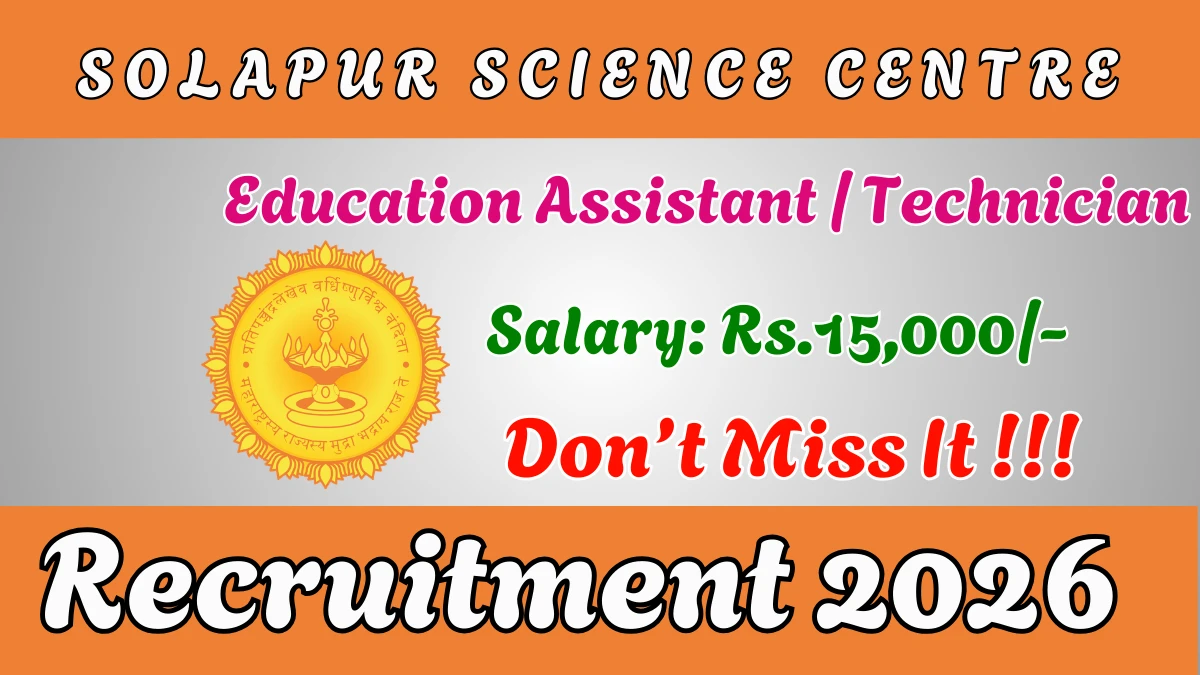 Solapur Science Centre Recruitment 2026: Solapur Science Centre has released the official notification for 2 Education Assistant A / Technician (Electrical) A posts, inviting applications from eligible candidates in Maharashtra. This recruitment provides an excellent opportunity for candidates seeking stable and well-paid research jobs.