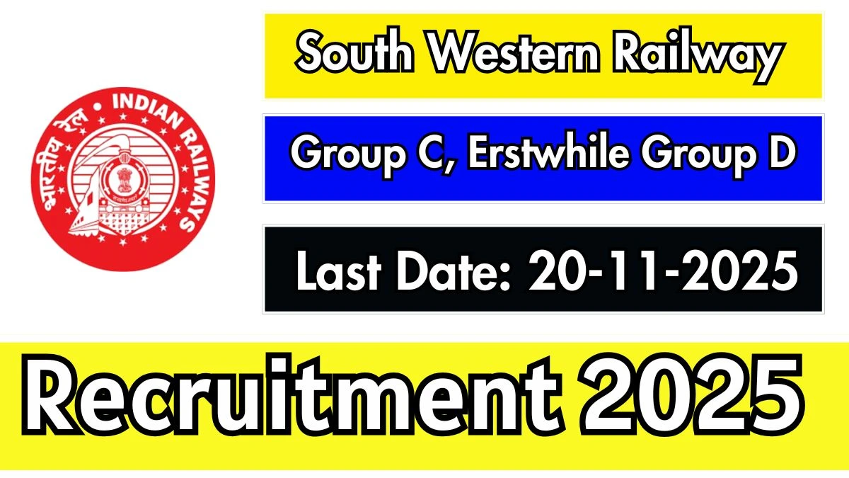 South Western Railway (SWR) has released an official notification for the recruitment of 11 Group C, Erstwhile Group D Posts. Interested and eligible candidates can apply Online through the official SWR website. The last date to submit the application form is 20-11-2025. In this article, you’ll find the SWR Group C, Erstwhile Group D Posts recruitment details, including eligibility criteria, age limit, salary structure, selection process, application steps, and direct links to the official notification and Online application form.