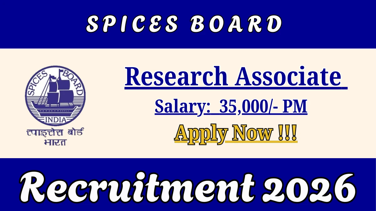 Spices Board has officially released a notification for the recruitment of 1 Research Associate Posts. This recruitment drive offers a great opportunity for candidates looking for government jobs. Interested and eligible candidates can apply by sending their resume and documents to the official email address.