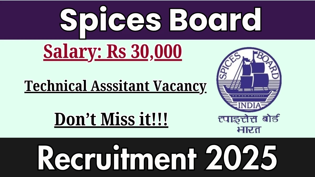 Spices Board Recruitment 2025 for 01 posts of Technical Asssitant. Candidates with M.Sc Can attend the walkin. The Walk-in on 04-11-2025. For detailed information please visit Spices Board official website, indianspices.com.