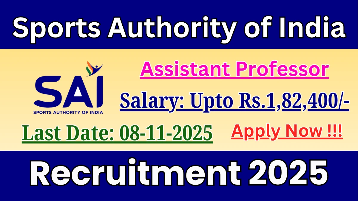 Sports Authority of India has released an official notification for the recruitment of 06 Assistant Professor Posts. Interested and eligible candidates can apply Online through the official Sports Authority of India website. The last date to submit the application form is 08-11-2025. In this article, you’ll find the Sports Authority of India Assistant Professor Posts recruitment details, including eligibility criteria, age limit, salary structure, selection process, application steps, and direct links to the official notification and Online application form.