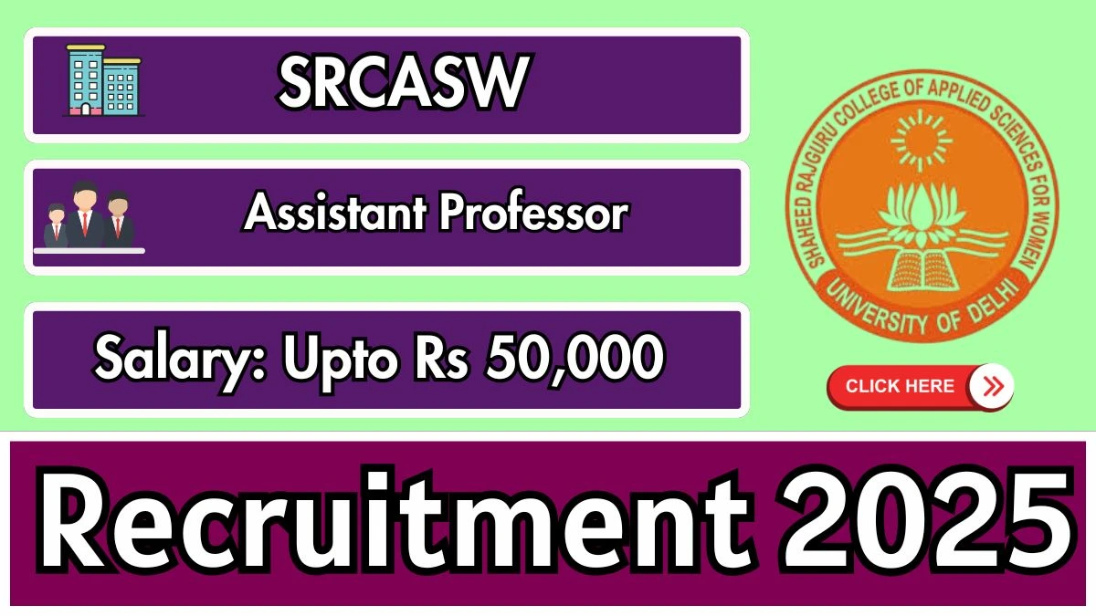 SRCASW Assistant Professor Recruitment 2025 Vacancy Details