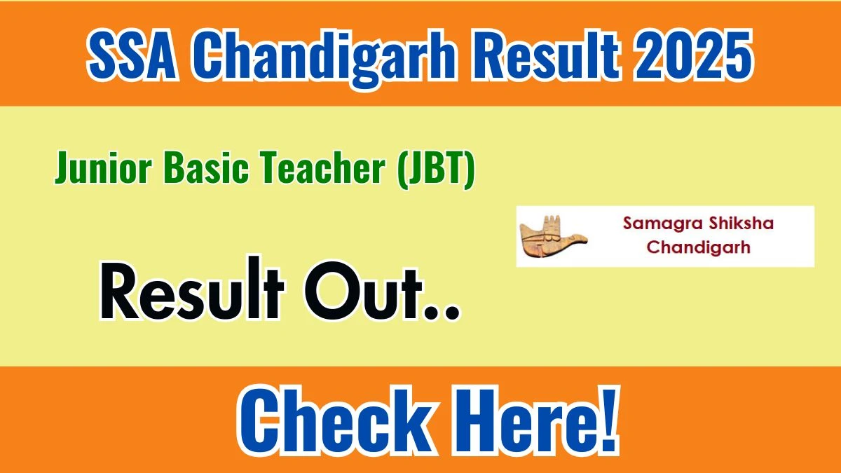 On 24-10-2025, SSA Chandigarh JBT (Primary Teacher) Result 2025 is out! SSA Chandigarh JBT (Primary Teacher) Result 2025 released on ssachd.nic.in. SSA Chandigarh has conducted the exam for JBT (Primary Teacher) in various centers across the country/state. Candidates can check and download their results by visiting the ssachd.nic.in.