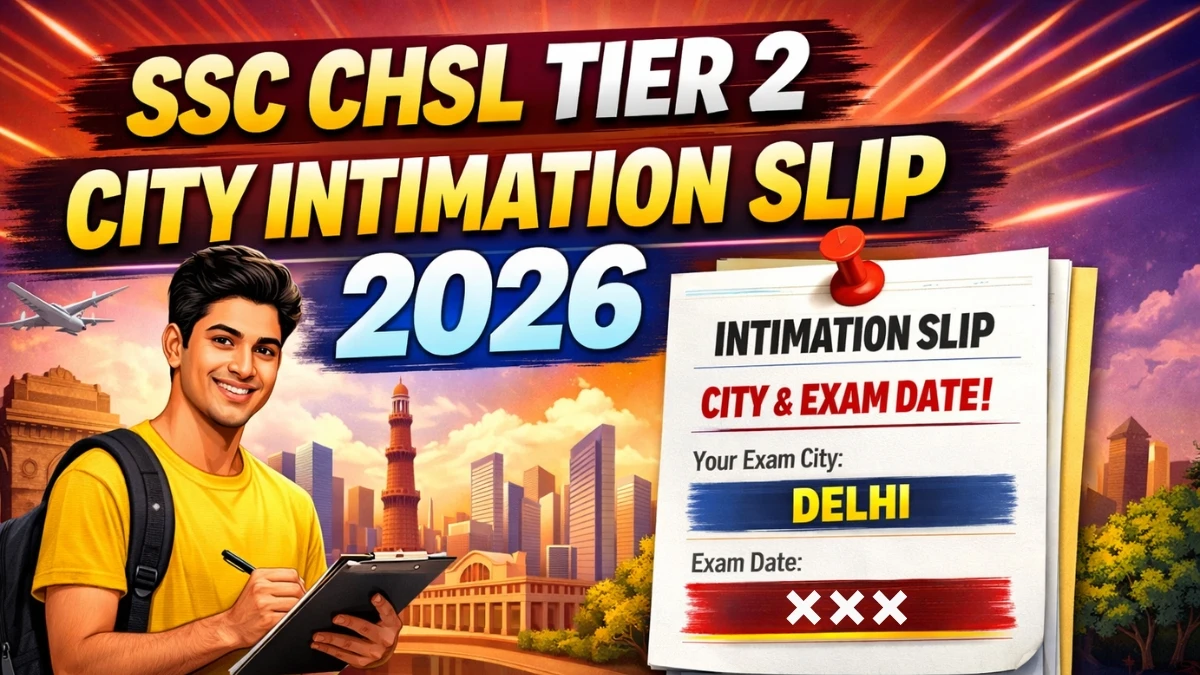 SSC CHSL Tier 2 City Intimation Slip 2026 has been officially released on 1st April 2026 by the Staff Selection Commission (SSC). This slip provides qualified candidates (who cleared Tier-1) with advance information about their allotted exam city, exam date, and other preliminary details to help plan travel and accommodation. It is not the admit card. The SSC CHSL Tier 2 Admit Card 2026 will be released on 7th April 2026.