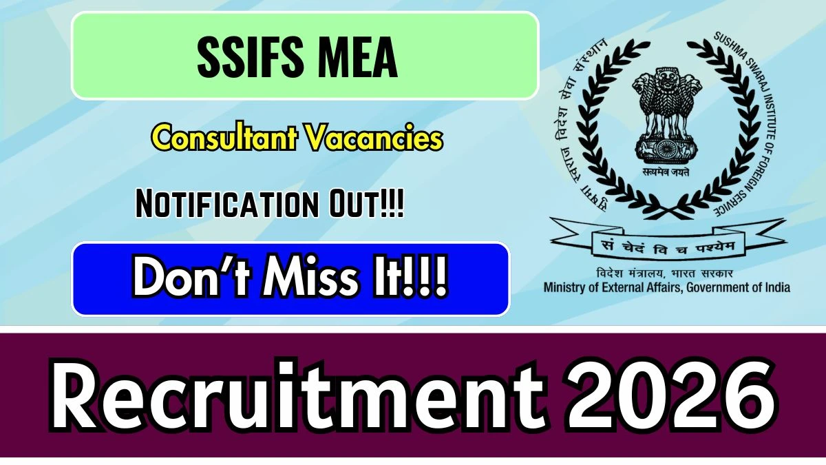 Sushma Swaraj Institute of Foreign Service Ministry of External Affairs (SSIFS MEA) has released an official notification for the recruitment of 01 Consultant Posts. Interested and eligible candidates can apply Online through the official SSIFS MEA website. The last date to submit the application form is 18-02-2026. In this article, you’ll find the SSIFS MEA Consultant Posts recruitment details, including eligibility criteria, age limit, salary structure, selection process, application steps, and direct links to the official notification and Online application form.