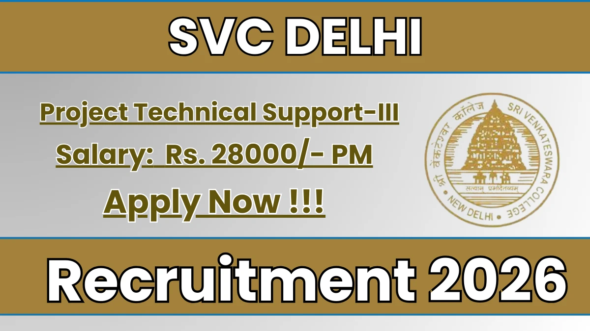 Sri Venkateswara College Delhi (SVC Delhi) has officially released a notification for the recruitment of 1 Project Technical Support-III Posts. This recruitment drive offers a great opportunity for candidates looking for government jobs. Interested and eligible candidates can apply by sending their resume and documents to the official email address. The email application must be submitted on or before 28-03-2026. Candidates are advised to send their applications well before the deadline. In this article, you will find complete details about Project Technical Support-III Recruitment 2026, including vacancy details, eligibility criteria, age limit, salary, selection process, email application steps, and important links.