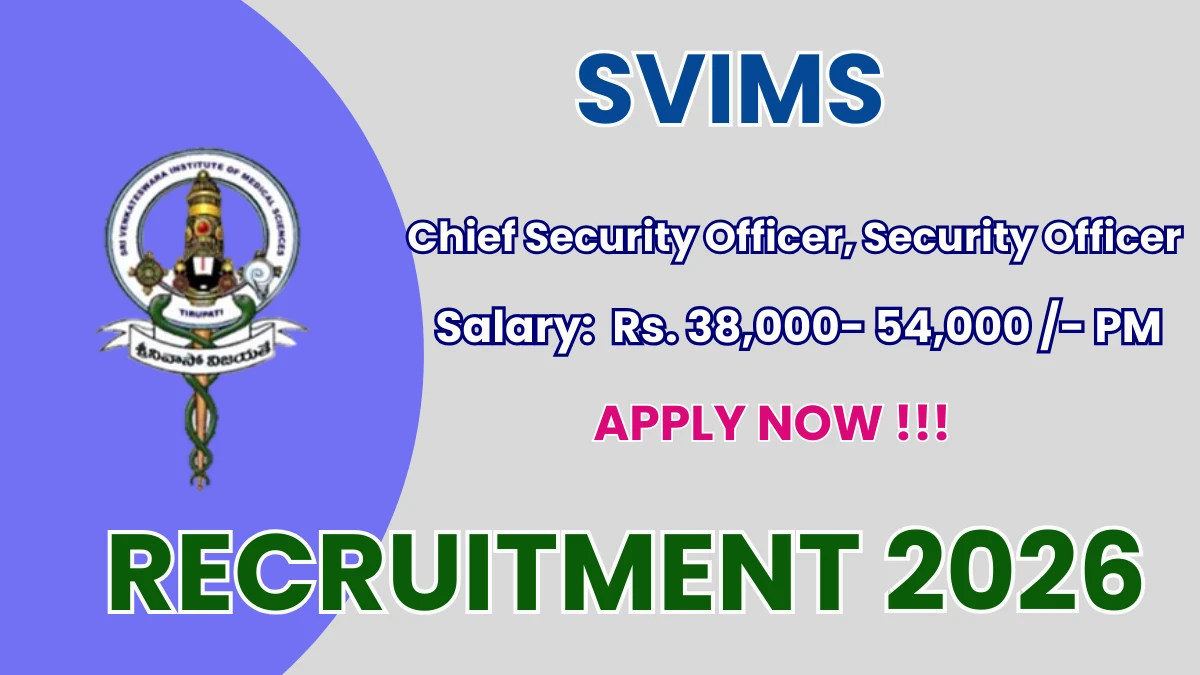 Sri Venkateswara Institute of Medical Sciences (SVIMS) Recruitment 2026 for 3 posts of Chief Security Officer, Security Officer. Candidates with Degree Can Apply Offline. The last date to apply offline is 20-03-2026. The candidate shall apply offline through SVIMS official website.