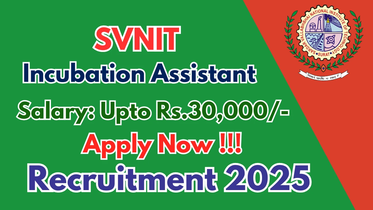 Sardar Vallabhbhai National Institute of Technology (SVNIT) has released an official notification for the recruitment of 01 Incubation Assistant Posts. Interested and eligible candidates can apply Offline through the official SVNIT website. The last date to submit the application form is 30-10-2025. In this article, you’ll find the SVNIT Incubation Assistant Posts recruitment details, including eligibility criteria, age limit, salary structure, selection process, application steps, and direct links to the official notification and Offline application form.
