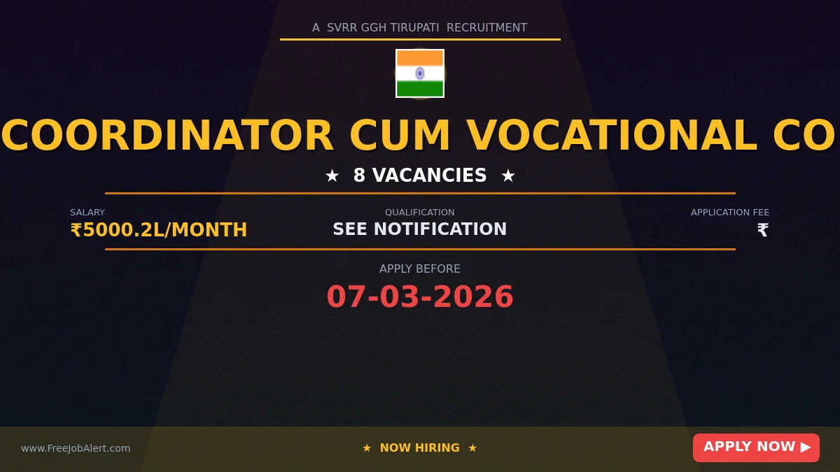 SVRR Government General Hospital Tirupati (SVRRGGH Tirupati) Recruitment 2026: SVRR Government General Hospital Tirupati has released the official notification for 8 Various posts, inviting applications from eligible candidates. This recruitment provides an excellent opportunity for candidates seeking stable and well-paid government jobs.