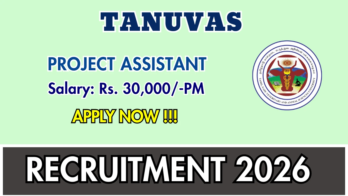 Tamil Nadu Veterinary and Animal Sciences University (TANUVAS) Recruitment 2026: Tamil Nadu Veterinary and Animal Sciences University is conducting a Walk-in Interview for 2 Project Assistant posts. This recruitment provides an excellent opportunity for eligible candidates to attend the interview directly without any prior online application. The Walk-in Interview is scheduled on 16-03-2026. Candidates are strongly advised to report at the venue with all required documents well before the scheduled time. Below, you can find complete details of Project Assistant Walk-in Recruitment 2026, including vacancy breakdown, eligibility, age limit, salary, walk-in schedule, venue, and important links.