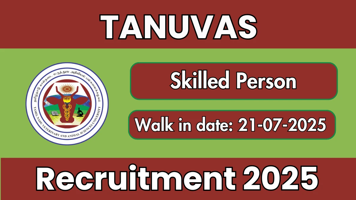 Tamil Nadu Veterinary and Animal Sciences University (TANUVAS) Recruitment 2025 for 01 posts of Skilled Person. Candidates with Any Bachelors Degree Can attend the walkin. The Walk-in on 21-07-2025. For detailed information please visit TANUVAS official website, tanuvas.ac.in.