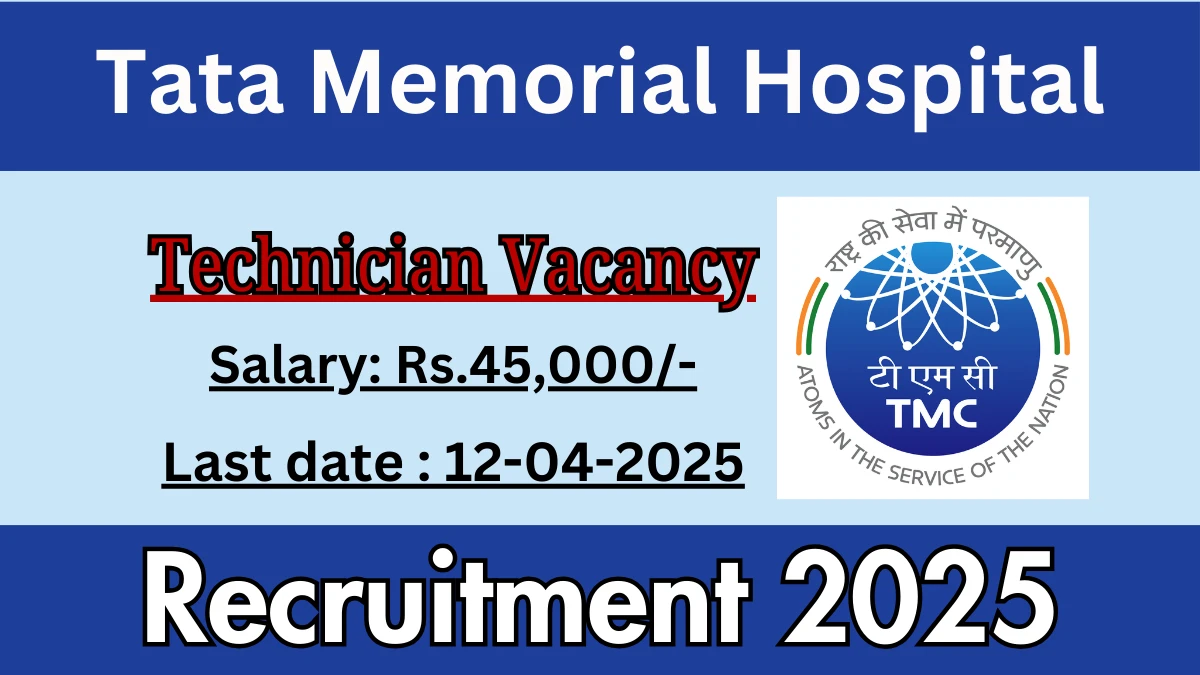 The Tata Memorial Hospital Recruitment 2025 for posts of Technician. Candidates with Diploma Can Apply Offline. The Offline application opens on 08-04-2025, and closes on 12-04-2025. The candidate shall apply Offline through Tata Memorial Hospital website, tmc.gov.in.