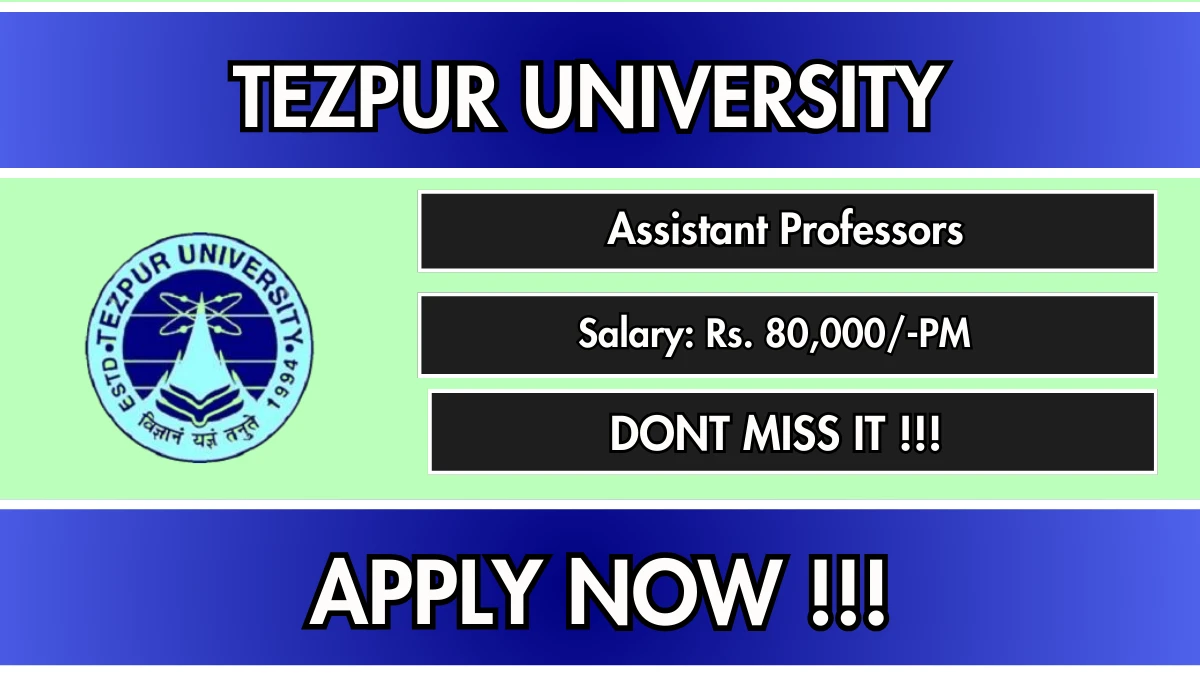 Tezpur University Recruitment 2026 has released the official notification for 2 Assistant Professor posts, inviting applications from eligible candidates. This recruitment provides an excellent opportunity for candidates seeking education jobs.