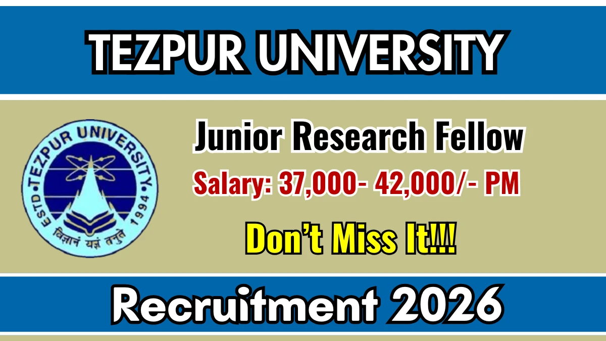 Tezpur University has released an official notification for the recruitment of 01 Junior Research Fellow Posts. Interested and eligible candidates can apply Online through the official Tezpur University website. The last date to submit the application form is 07-03-2026. In this article, you’ll find the Tezpur University Junior Research Fellow Posts recruitment details, including eligibility criteria, age limit, salary structure, selection process, application steps, and direct links to the official notification and Online application form.