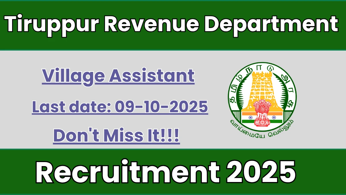Tiruppur Revenue Department has released an official notification for the recruitment of 82 Village Assistant Posts. Interested and eligible candidates can apply Offline through the official Tiruppur Revenue Department website. The last date to submit the application form is 09-10-2025. In this article, you’ll find the Tiruppur Revenue Department Village Assistant Posts recruitment details, including eligibility criteria, age limit, salary structure, selection process, application steps, and direct links to the official notification and Offline application form.