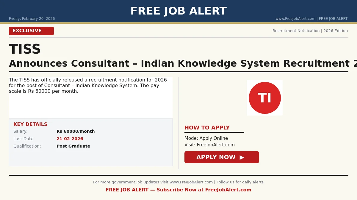 Candidates who meet the eligibility criteria can apply online for the TISS Consultant – Indian Knowledge System Recruitment 2026.
