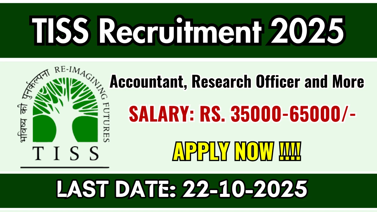 Tata Institute of Social Sciences (TISS) has released an official notification for the recruitment of 42 Accountant, Research Officer and More Posts. Interested and eligible candidates can apply Offline through the official TISS website. The last date to submit the application form is 22-10-2025. In this article, you’ll find the TISS Accountant, Research Officer and More Posts recruitment details, including eligibility criteria, age limit, salary structure, selection process, application steps, and direct links to the official notification and Offline application form.