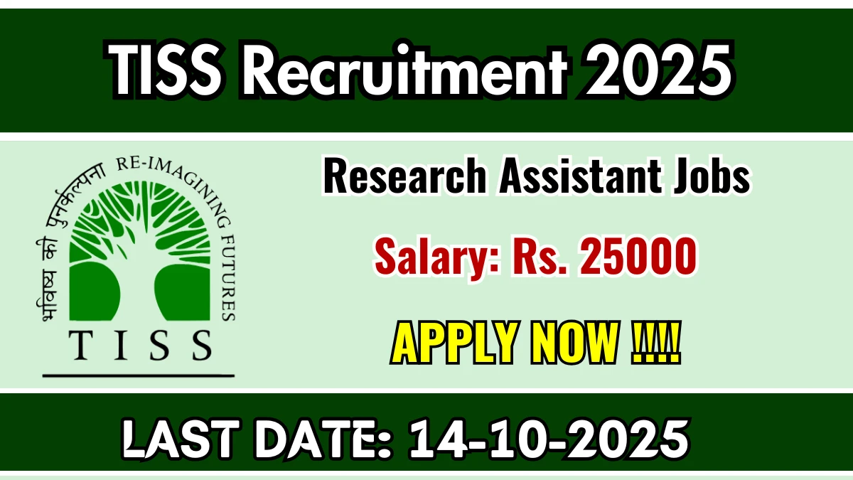 Tata Institute of Social Sciences (TISS) has released an official notification for the recruitment of 01 Research Assistant Posts. Interested and eligible candidates can apply Offline through the official TISS website. The last date to submit the application form is 14-10-2025. In this article, you’ll find the TISS Research Assistant Posts recruitment details, including eligibility criteria, age limit, salary structure, selection process, application steps, and direct links to the official notification and Offline application form.