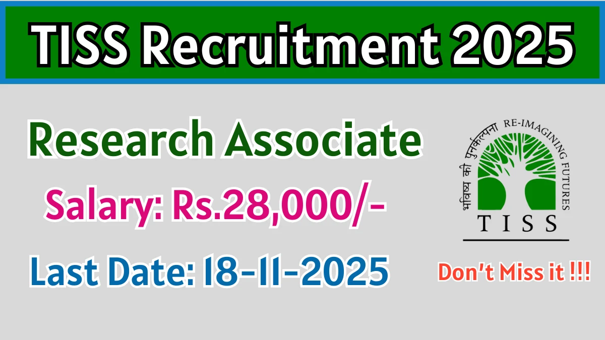 Tata Institute of Social Sciences (TISS) has released an official notification for the recruitment of Research Associate Posts. Interested and eligible candidates can apply Offline through the official TISS website. The last date to submit the application form is 18-11-2025. In this article, you’ll find the TISS Research Associate Posts recruitment details, including eligibility criteria, age limit, salary structure, selection process, application steps, and direct links to the official notification and Offline application form.