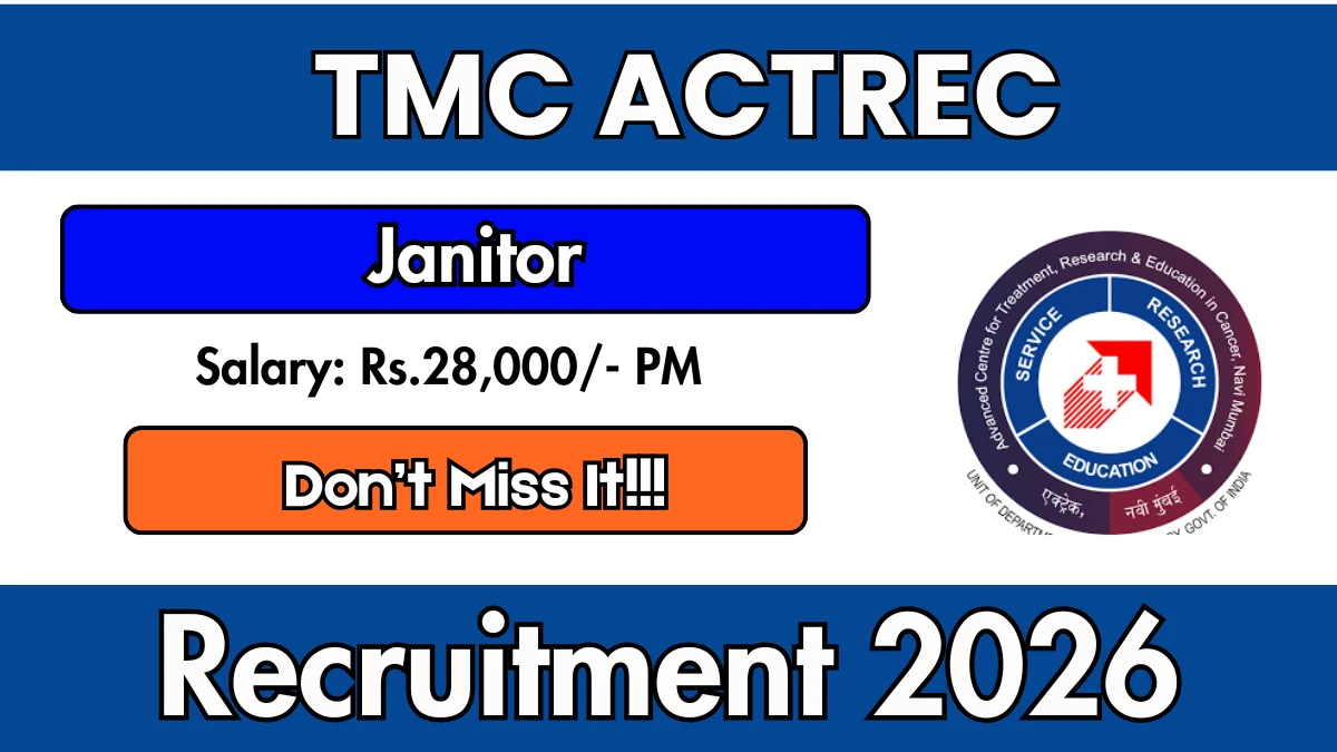 Advanced Centre for Treatment Research and Education in Cancer (TMC ACTREC) Recruitment 2026 for 2 posts of Janitor. Candidates with 12th can attend Walk In. The Walk-in on 10-03-2026. For detailed information please visit TMC ACTREC official website.