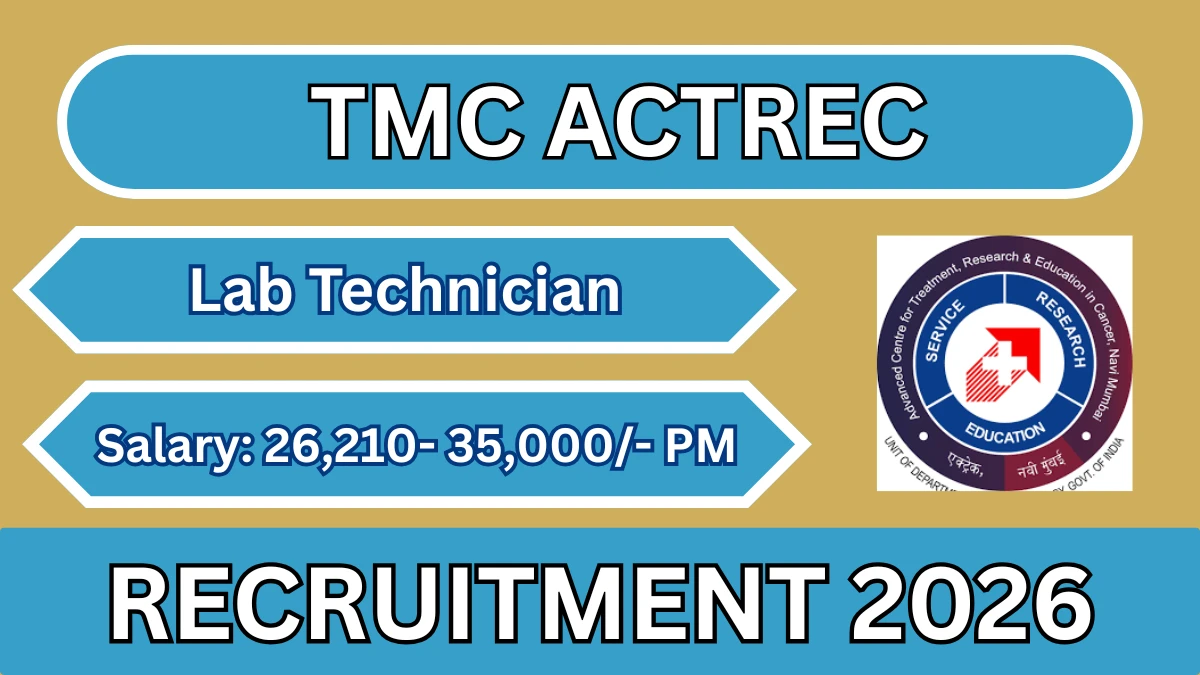 Advanced Centre for Treatment, Research and Education in Cancer (TMC-ACTREC) Lab Technician (Composite Lab) Notification 2026 has been released on 31 March 2026 on the official website tmc.gov.in. Has been announced through the TMC-ACTREC Lab Technician (Composite Lab) Recruitment 2026.