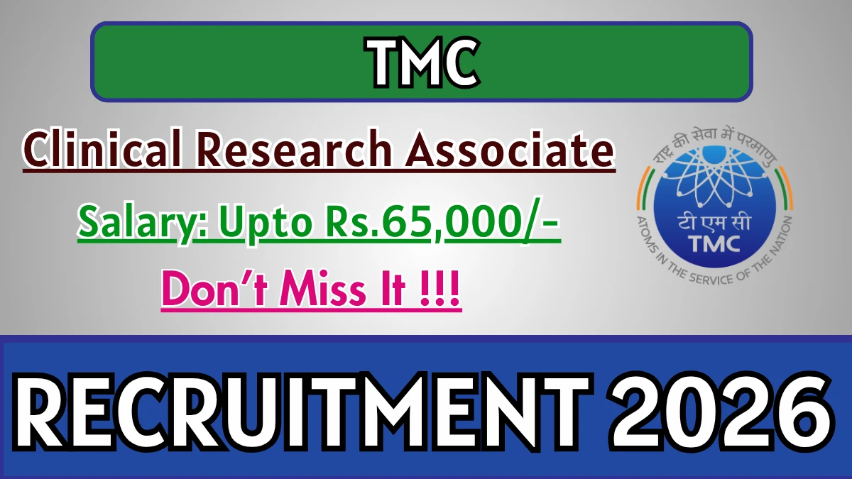 Tata Memorial Centre (TMC) (TMC) Clinical Research Associate (CRA) Notification 2026 has been released on the official website TMC. A total of 5 vacancies have been announced through the TMC Clinical Research Associate (CRA) Recruitment 2026.