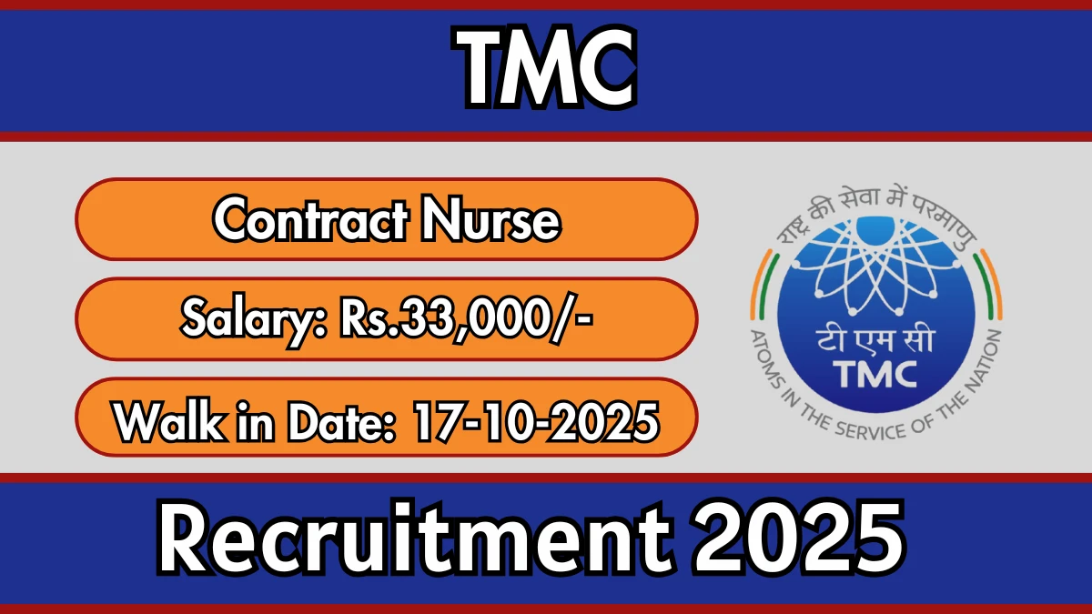 Tata Memorial Centre (TMC) Recruitment 2025 for 35 posts of Contract Nurse. Candidates with B.Sc, Diploma Can attend the walkin. The Walk-in on 17-10-2025. For detailed information please visit TMC official website, tmc.gov.in.