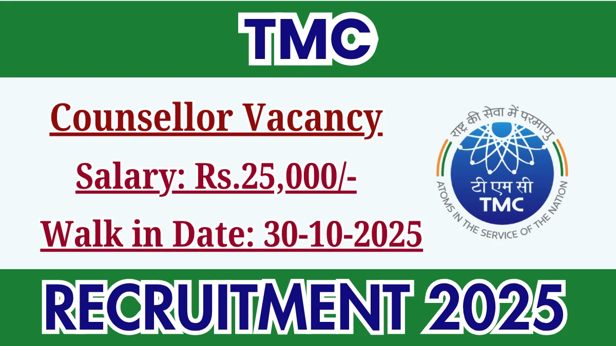 Tata Memorial Centre (TMC) Recruitment 2025 for 02 posts of Counsellor. Candidates with BSW Can attend the walkin. The Walk-in on 30-10-2025. For detailed information please visit TMC official website, tmc.gov.in.
